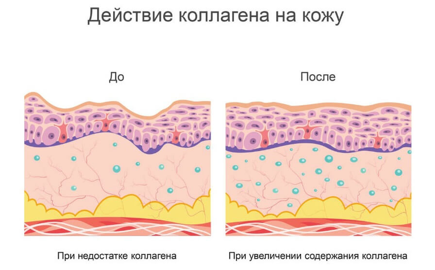 После введения под кожу коллагенновые пептиды подают сигналы фибробластам синтезировать большое количество новых коллагеновых волокон. Это замедляет процесс гликирования, окислительного стресса, улучшает структуру мягких тканей.